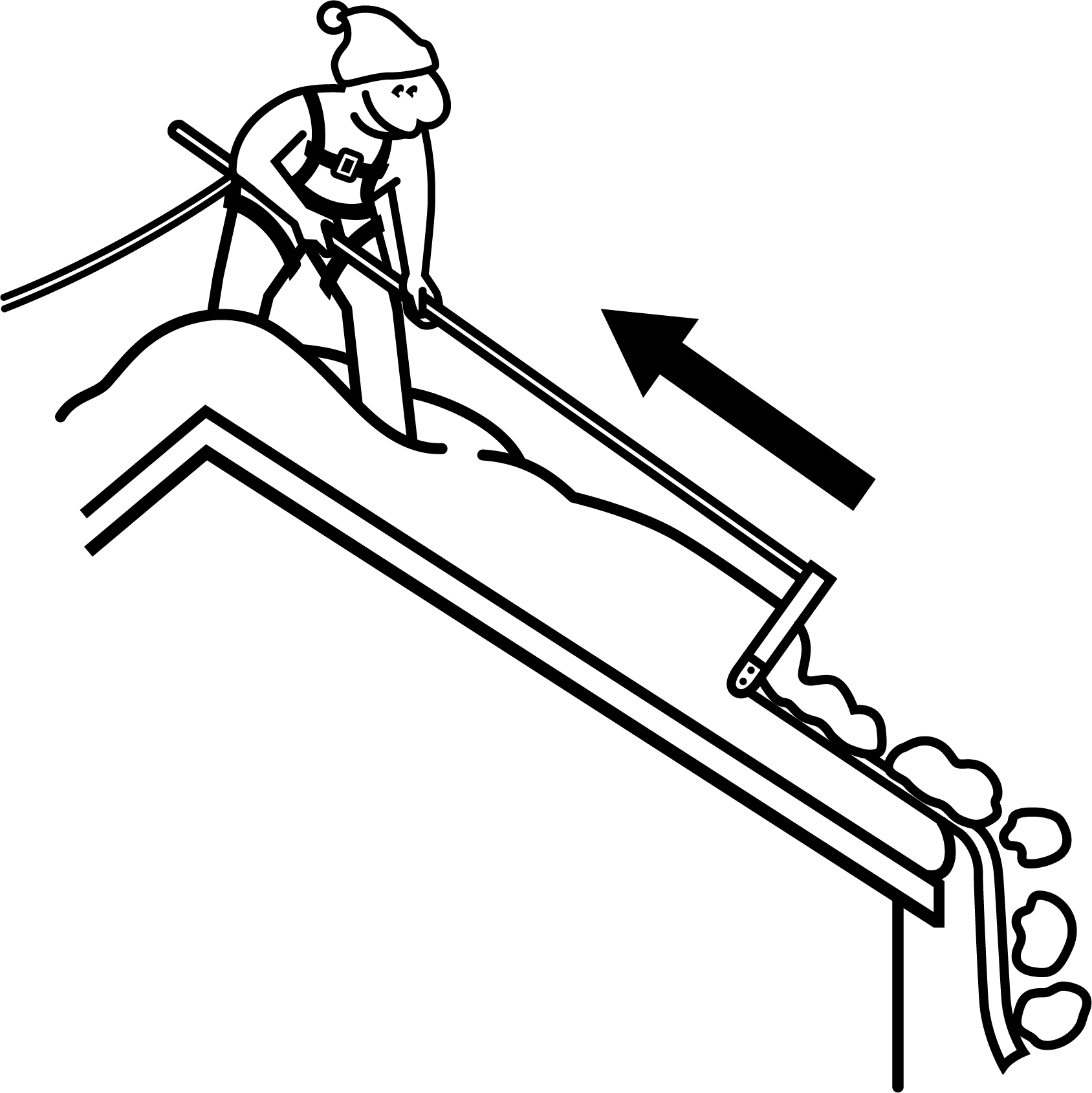 Before climbing, make sure you’re using proper safety gear and stable footing. From the rooftop, hang the snow slide over the eaves and pull the cutting frame toward you to clear the snow in smooth, controlled sections.