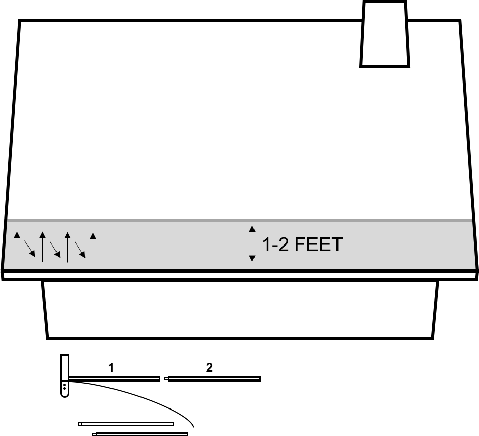 To effectively remove snow while working from the roof, the slide must be hanging over the lower eave or gutter. You will want to connect the number of pole extensions that will enable you to reach the lower edge of the roof from the peak.