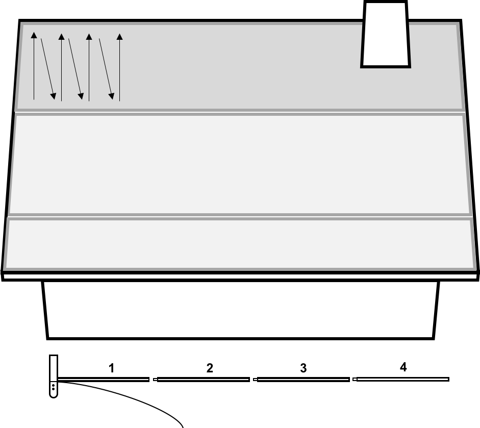 Starting at the edge of your house, clear snow 5 feet at a time using upward strokes and moving laterally across the roof. Do not try to clear the entire upward length of your roof by adding all of the pole extensions when you start. This will require more effort over time in that the weight of your SnowPeeler is not optimized. You may also find that the end of your SnowPeeler is hitting the ground more frequently as you have to pull it back all the way to reach the bottom of the roof.