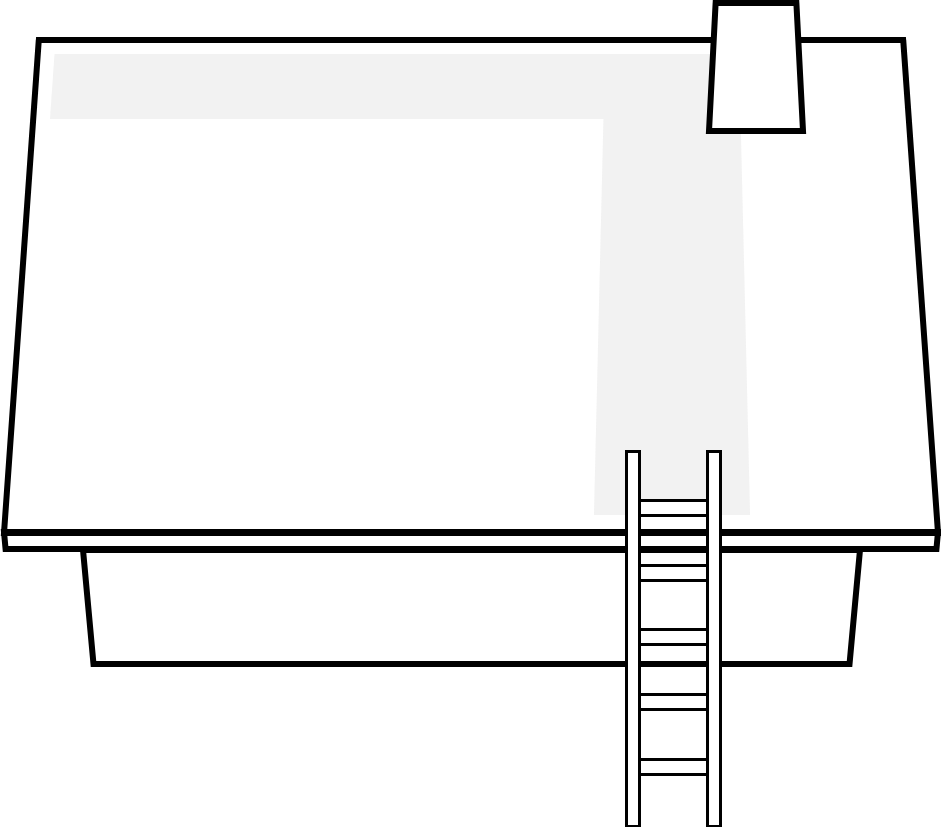 To safely use your SnowPeeler from the rooftop, you must first clear a path to the peak and across the roofline. This starts with careful placement of your ladder. You’ll want to make sure it is on firm, level ground away from power and utility lines. In addition, always let someone know that you will be working on the roof and ask them to check up on you. If possible, have them “spot” you while you’re on the roof.